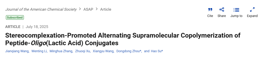 该研究通过精准调控肽段氢键倾向与oLA立体络合的竞争平衡,首次实现了热力学稳定的交替超分子共聚。弱氢键体系中,立体络合主导异源二聚化及交替排列;强氢键则导向无规共聚。这一发现不仅拓展了超分子共聚物库,更为微结构精准调控提供了新范式——通过操纵同源/异源相互作用平衡,可定向设计功能化超分子材料。