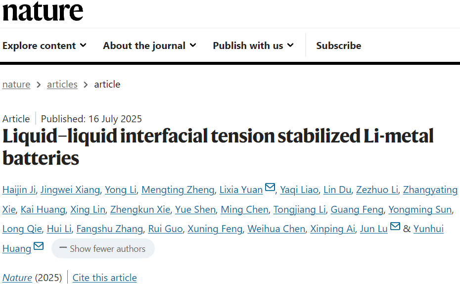 原文详情:Liquid-liquid interfacial tension stabilized Li-metal batteries (Nature2025, DOI: 10.1038/s41586-025-09293-4)