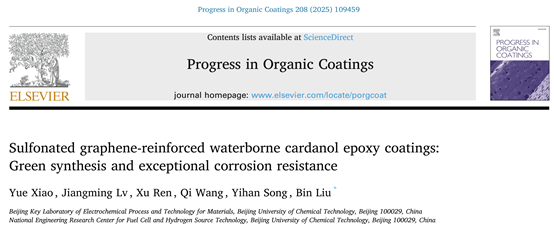 数据来源与出处 相关研究成果以“Sulfonated graphene-reinforced waterborne cardanol epoxy coatings: Green synthesis and exceptional corrosion resistance”为标题发表在《Progress in Organic Coatings》上。