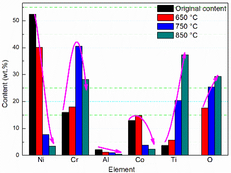 图1高温氧化过程中合金表面元素含量的变化规律