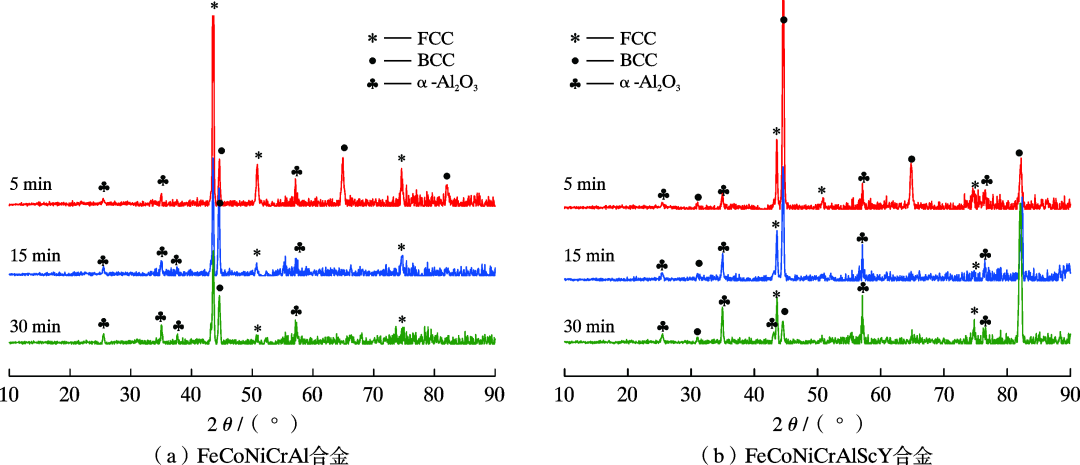 FeCoNiCrAl和FeCoNiCrAlScY 合金1 200 ℃高温氧化后表面XRD谱