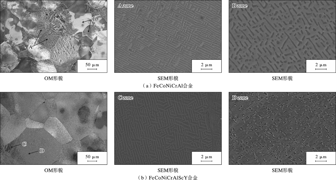 论文图片 FeCoNiCrAlScY和FeCoNiCrAl 合金的微观组织形貌