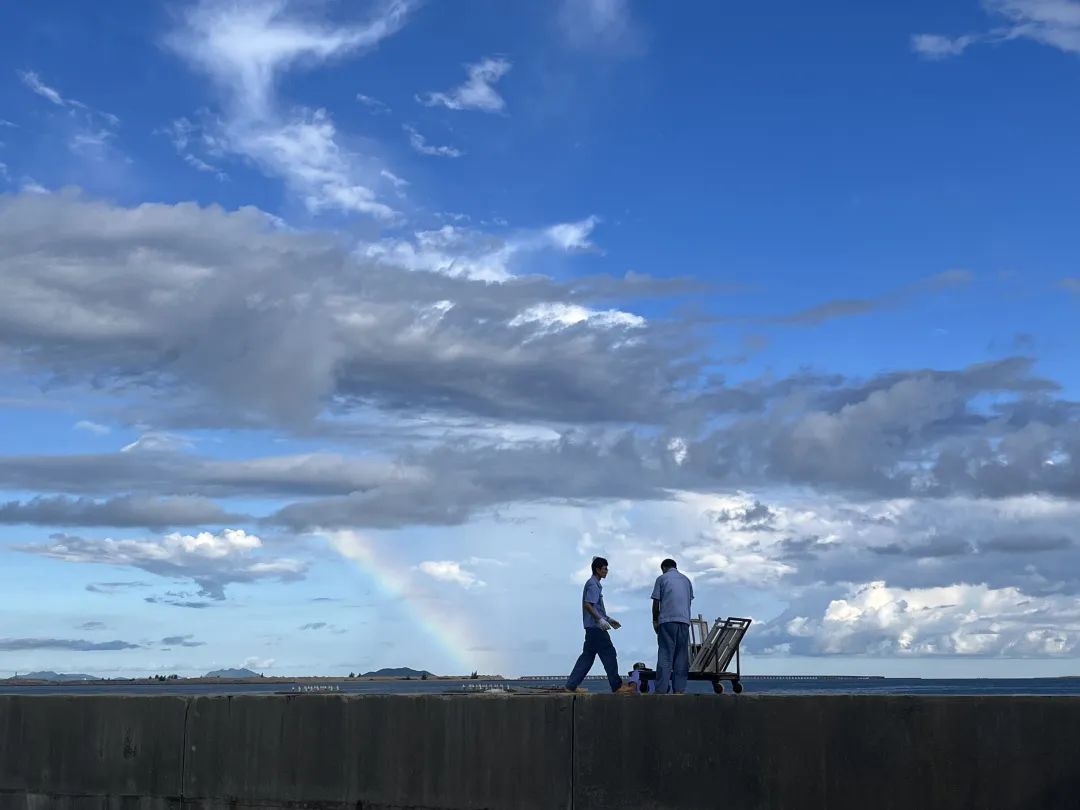 台风后放回海面平台试样见到彩虹