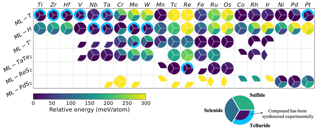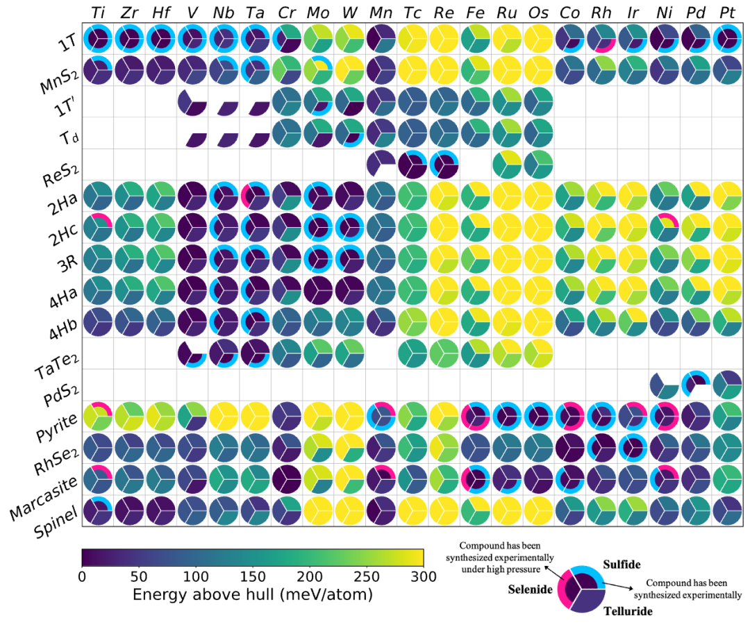 研究背景 过渡金属二硫化物(TMDs)是一类拥有大量结构相的材料,例如1T、2H、3R和1T’相等。在实验上,单层或少层TMDs已成功通过剥离法合成,进一步扩展了TMDs的构型空间。这些多样的构型也给TMD材料带来了丰富的物理化学性质,例如光致发光、谷霍尔效应以及高载流迁移率。利用这些性质,TMDs已经被工业界广泛应用于能量存储、光伏材料、光电探测器以及新型芯片材料等领域。虽然有着极其丰富的构型,但目前关于TMD材料的研究仍主要集中在几个特定化学空间中的几种特定的相,如2H-MoS2、Td-WTe2。对这一类重要材料来讲,目前仍缺乏一类系统全面的研究,尤其是对于其最基础的两类性质:可合成性以及可剥离性。 工作亮点 这项工作利用高通量第一性原理的方法,通过覆盖尽可能多的化学以及构型空间,系统性地评估了TMD材料的可合成性以及可剥离性。这项研究有助于指导实验合成与设计体相、单层TMD材料,预计将对纳米材料领域的研究有重要意义。 图文导读 通过覆盖63个化学空间(21种阳离子与3种阴离子组合)以及16个构型空间(12种层状相和4种非层状相),共得到了1008种TMD体相化合物。图1给出了这些体相TMD材料的热力学稳定性热图。本文借助“Atomly”材料数据库在每个化学空间中构建相图,使用“energy above hull”(Ehull)作为指标来评定材料的热力学稳定性,Ehull数值越小的材料可以认为其结构越稳定,即材料的可合成性越好。图1中以蓝色或红色圆弧标记的化合物,代表其在实验上已经被成功合成出来。可以发现,实验上合成的化合物基本在理论预测上也都具有较高的稳定性,这验证了理论计算的合理性。而对于那些在理论预测上有较高稳定性但还没有被实验合成的材料,它们的性质值得被进一步探索。从图1中可以发现同一族的过渡金属倾向于采纳相似的结构构型,这一点和过渡金属的d轨道电子在八面体晶体场下的排布是息息相关的。 1 体相TMD材料的热力学稳定性热图 为了进一步探索层状TMD材料的可剥离性,需要对单层TMDs的能量信息进行系统的评估。和体相类似,通过覆盖63个化学空间以及6个单层构型空间,本文研究得到了378种单层TMD化合物。图2给出了这些单层TMD材料的相对稳定性热图。同样得,对于那些在实验上已经合成的单层TMDs,可以发现其在理论预测上也均有较高的热力学稳定性,说明了理论计算的准确性。 2 单层TMD材料的热力学稳定性热图 综合以上对体相、单层TMD材料的探索,本文对层状TMD材料的可剥离性做了评估。图3中包含了多种维度的数据,其中颜色的深浅代表相应的层状TMD化合物的剥离能大小,而扇形的面积则代表了对应层状TMD化合物的结构稳定性高低。对于一个层状TMD结构,只有当其同时满足既拥有较高稳定性且剥离能较低的条件时,才能被认为是可以剥离的。基于这一判断标准,本文将图3中的层状TMD化合物划分为了三类:容易剥离(easily exfoliable,EE)、可能剥离(feasibly exfoliable,FE),以及不能剥离(non-exfoliable,NE)。图3中用橙色的圆弧标记出的化合物都是已经被实验证明能够剥离为单层的材料,而它们在理论预测上也都属于EE一类,显示出了理论预测的准确性。图3给出了一大类可以剥离为单层的TMD材料,鉴于二维材料在目前理论研究与工业应用上的重要地位,这些潜在的二维材料的性质与应用场景值得被进一步研究与探索。 3 层状TMD材料的剥离能热图 过渡金属二硫化物(TMDs)是一类拥有丰富结构构型和新颖物理性质的材料。以往对这一类材料的研究主要集中在单层或少层结构的可合成性上,但是目前对于TMD材料的丰富的构型空间仍缺乏一种较完整的探索。 本文使用高通量第一性原理计算的方法探索了庞大的化学空间与结构构型空间,系统性地评估了TMD材料的可合成性与可剥离性, 提供了一种定量的探索材料合成与体系结构之间关系的理解方法。本文提供的“鸟瞰”图对于指导设计多种维度的新型TMD材料具有重要意义。在此基础上,未来科研人员对于TMDs更高阶性质的探索,如电子结构、输运性质、拓扑性质等,将更加有的放矢,事半功倍。 总结与未来展望 本文研究工作得到国家重点研发计划基金(2021YFA0718700)和中国科学院基金(ZDBS-LY- SLH007、XDB33020000、CAS-WX2021PY-0102)的经费支持,以及松山湖实验室计算材料平台的计算资源支持。 作者简介 芦腾龙 第一作者 中国科学院物理研究所,在读博士研究生。2018年本科毕业于北京师范大学物理系,2018年至今就读于中国科学院物理研究所,攻读博士学位。atomly.net材料数据库核心开发人员。主要研究领域:二维材料、电池阴极材料、固态电解质等。 孟 胜 通讯作者 中国科学院物理研究所研究员、国家表面物理重点实验室主任、博士生导师 。主要研究方向:(1)表面量子相互作用; (2) 激发态量子动力学;(3) 能量转化和存储微观机制、太阳能电池、原子尺度水特性等。主持开发了基于函数密度泛函理论的TDAP软件包,深受行业好评。在Phys. Rev. Lett. 、Nature、Science、Nano Letters、J. Am. Chem. Soc.等行业头部期刊发表论文 200余篇。论文共被引用 14,000 余次, H因子60。入选Scopus 2014-2020 年中国高被引作者。获得基金委优秀青年基金、杰出青年科学基金支持。 刘 淼 通讯作者 中国科学院物理研究所特聘研究员,博士生导师。研究方向包括:材料表界面微观机理、能源材料、数据驱动的新材料发现、人工智能等