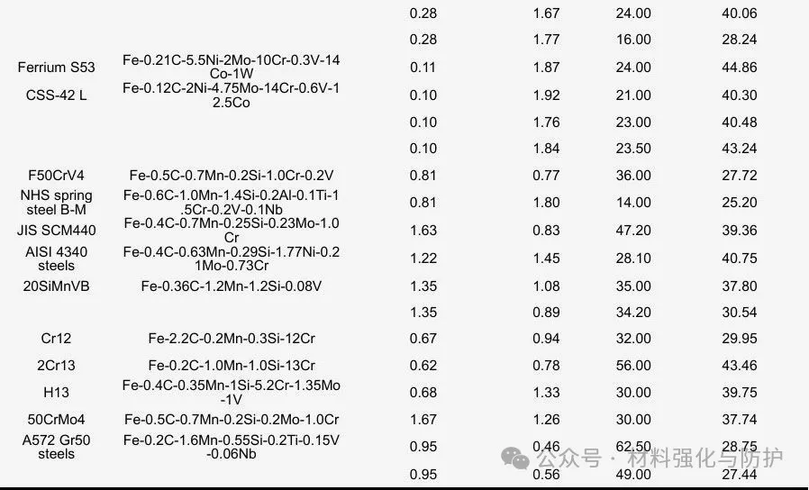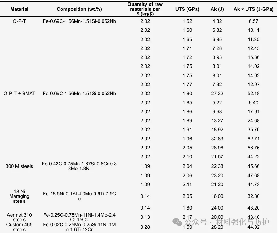表 普通工程钢的原材料成本、极限抗拉强度(UTS)、冲击吸收能(Ak)和UTS ×Ak