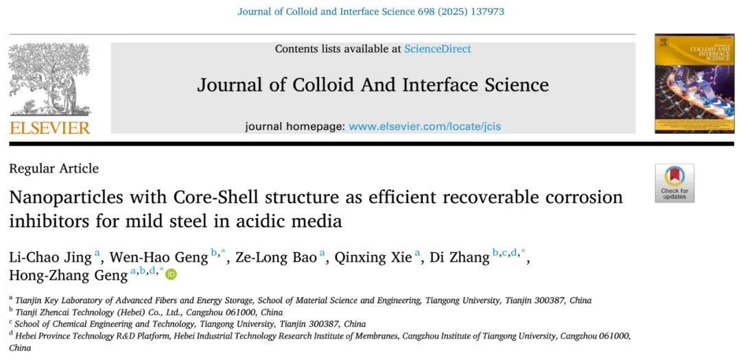 数据来源与出处 相关研究成果以“Nanoparticles with Core-Shell structure as efficient recoverable corrosion inhibitors for mild steel in acidic media”为标题发表在《Journal of Colloid And Interface Science》上。