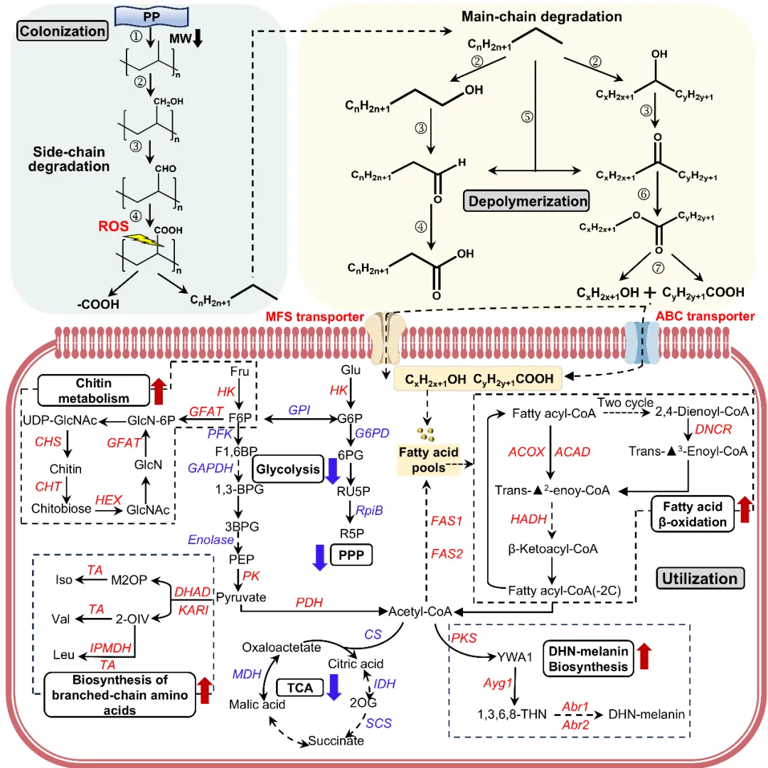 图2 海洋真菌Alternaria alternata FB1降解聚丙烯塑料的推测模型