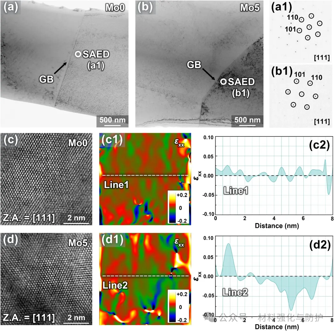 Mo的加入引入的更大的原子应变,并使其分布趋于不均匀分布,使位错在滑移过程中受到更强阻碍,从而提升了合金的本征强度。