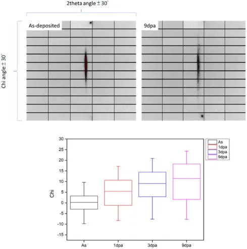 表 1. 通过透射电子显微镜(TEM)研究获得的 CoCrFeNi 高熵合金薄膜的晶粒尺寸和孪晶间距,作为不同离子注量(275 keV He 离子在室温下辐照)的函数。相应的位移每原子(dpa)和 He 离子浓度通过 SRIM 计算[25]估算。