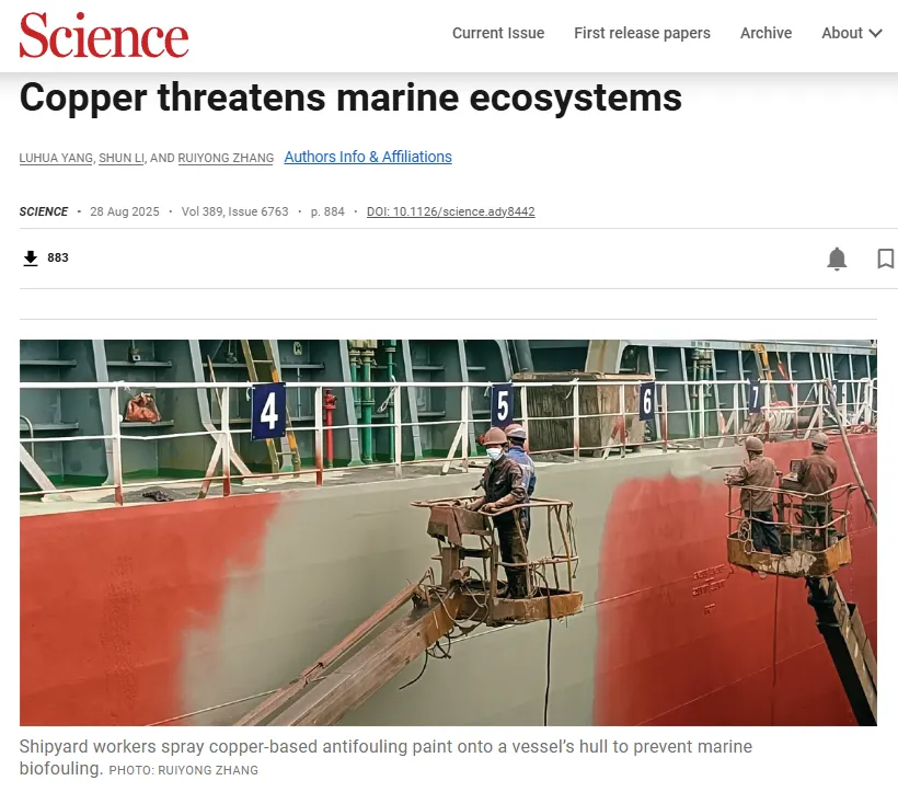 Science刊发海洋所关于铜基防污涂料威胁海洋生态系统研究成果
