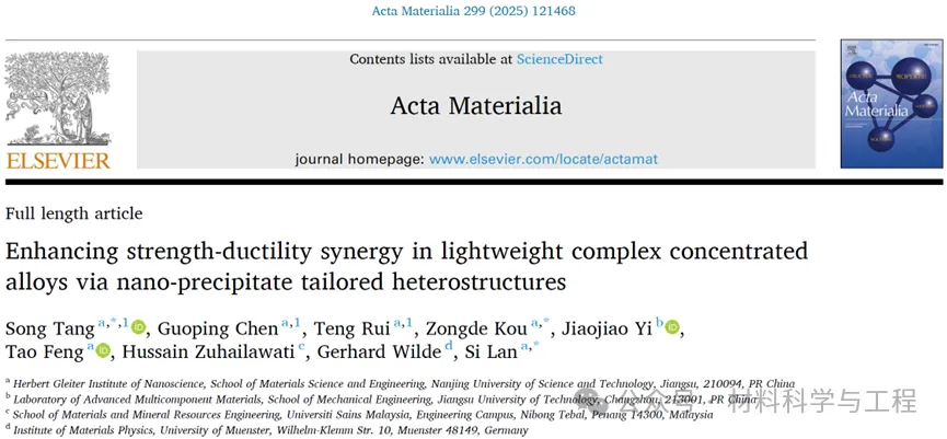 南理工《Acta Materialia》:纳米沉淀相调控异质结构,实现合金强塑性协同提升