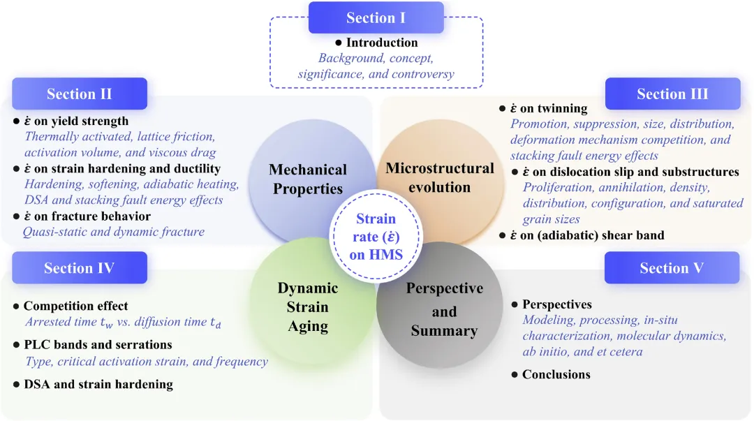(2)阐明应变速率效应的潜在机制,包括热激活、晶格摩擦、绝热温升、声子阻力与动态应变时效;