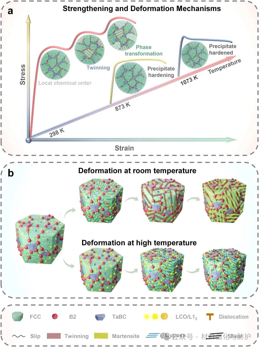 宽温域强化-变形机制协同示意图
