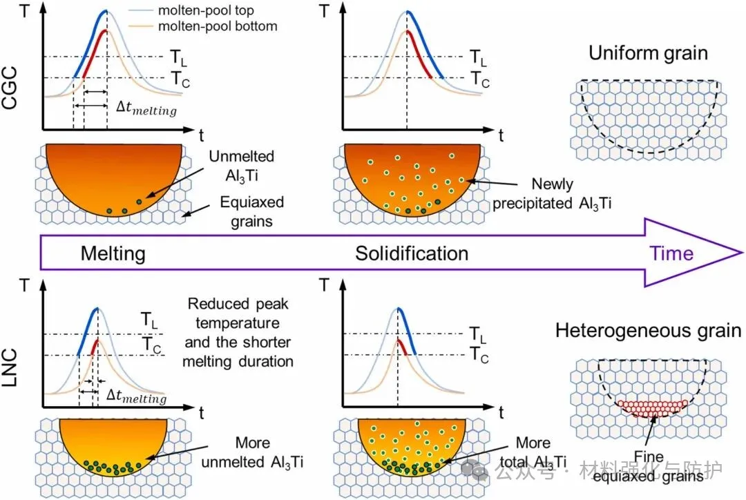 CGC与LNC条件下晶粒结构形成机制示意图