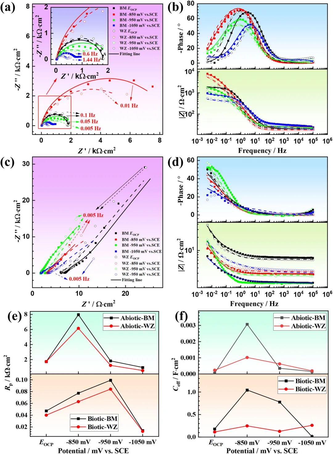 在SRB存在的条件下,焊缝金属表现出比母材与热影响区更高的腐蚀敏感性,其腐蚀电流密度显著升高,电荷转移阻抗明显降低,同时,SRB在焊缝金属表面更易形成致密生物膜,生物膜下的局部贫氧与代谢产物共同促使腐蚀点快速发展。