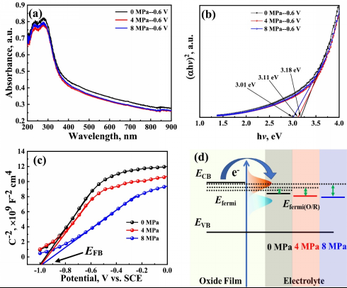 图6 静水压改变半导体钝化膜的能带结构,促进电子转移