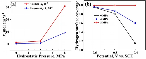 图4 静水压显著增强Volmer析氢反应和氢表面覆盖度