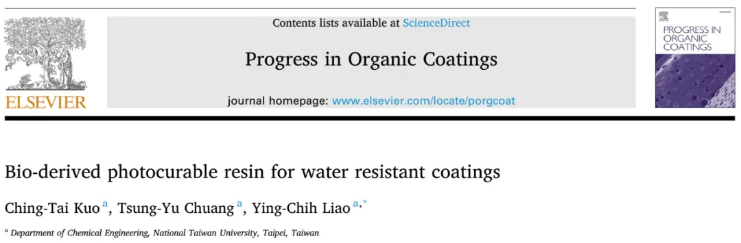 近期,台湾大学通过将丙烯酸酯化环氧大豆油(AESO)与姜黄素(CCM)相结合,成功开发了一种无毒、高度生物相容性的光固化生物基防水涂层。