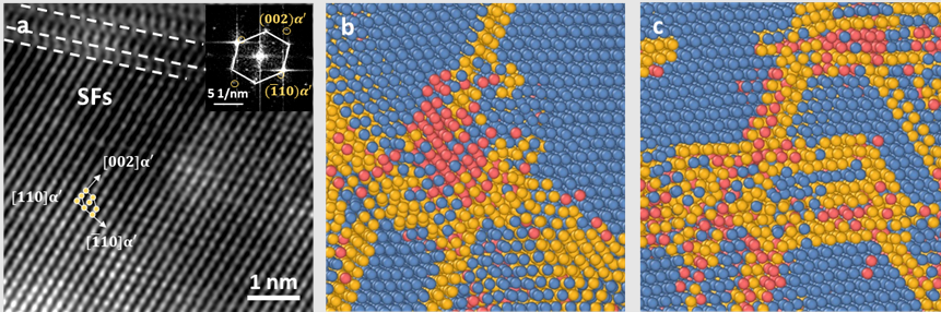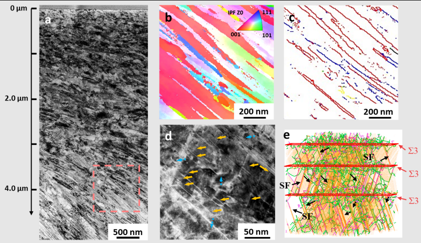 图3. GNS 304NG中高密度层错与辐照缺陷相互作用,发生自适应马氏体相变