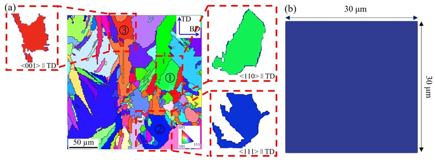 研究结果表明,晶粒取向和纹理对材料的变形行为和力学性能具有重要影响,非局部CPFFT模型能够有效捕捉到材料的各向异性变形机制,为进一步优化LPBF加工超合金的性能提供了理论依据。