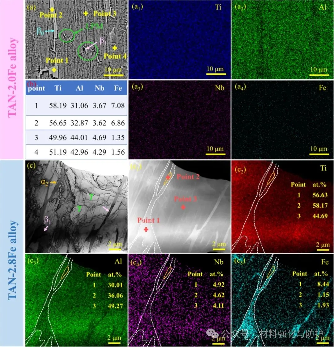 ① Fe微合金化实现α2→β1的层片级转变
