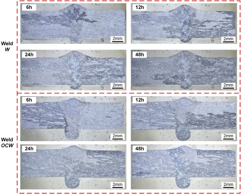 图18 焊缝W和焊缝OCW的腐蚀行为示意图。