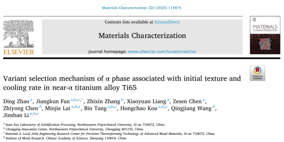 西工大《Materials Characterization》:高温钛合金α相变体选择机制全解析