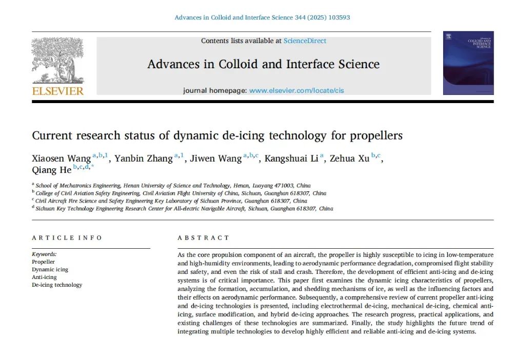 中国民用航空飞行学院何强教授/河南科技大学张彦斌教授:螺旋桨动态除冰技术的研究现状