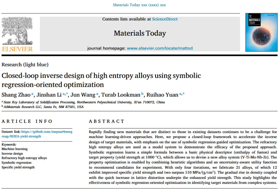 前沿 | 难熔高熵合金的智驱闭环发现框架