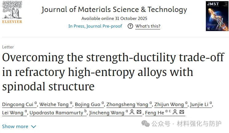 西工大JMST:突破强韧性瓶颈!高熵合金通过自发调控的调幅分解结构实现高强高延展