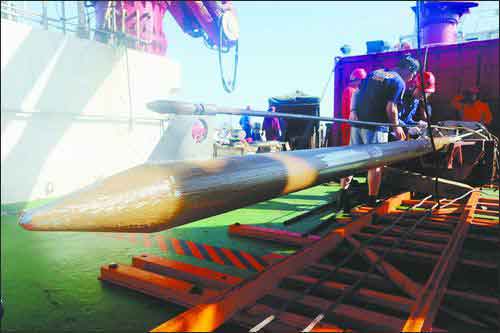 沈阳自动化所自主水下机器人技术研究室科研人员历经90余天艰苦工作,共进行了118潜次试验,取得了多项重大突破。
