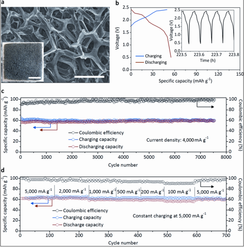 图2:以三维石墨为正极的铝电池材料形貌与性能表征