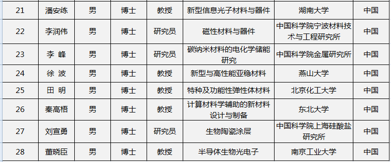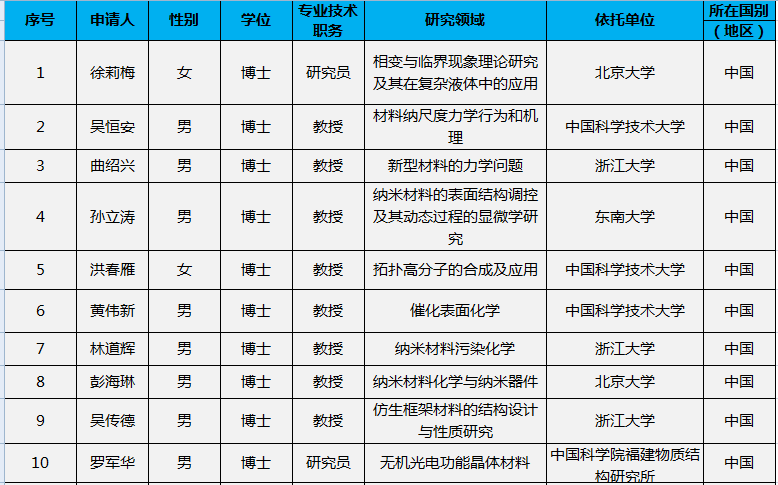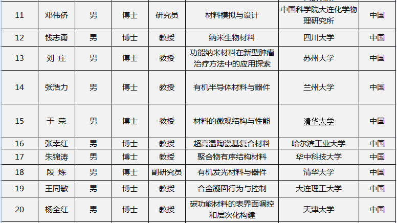 新出炉!2015年材料领域国家杰出青年科学基金资助项目表