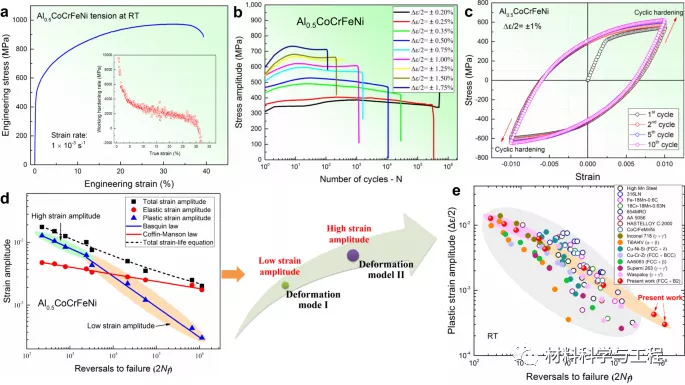 图2 Al0.5CoCrFeNi合金的拉伸和LCF结果。