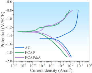 在3.5wt%NaCl溶液中研究了具有高强度-延展性协同作用的细晶粒Mg-6Gd-2Ag(wt%)合金的微观结构和腐蚀行为,并与铸态合金进行了比较。得出以下结论:(1)ECAP工艺在Mg-Gd-Ag合金中诱导出细晶结构,随后的时效带出嵌入细晶基体中的分层析出物,其由β相亚微粒、β相纳米粒子、γ”相纳米片和β’相纳米片组成。