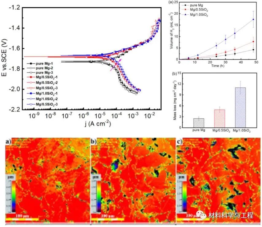 图1.Mg-SiO2纳米复合材料的电化学,吸氢,失重腐蚀以及晶间腐蚀表征