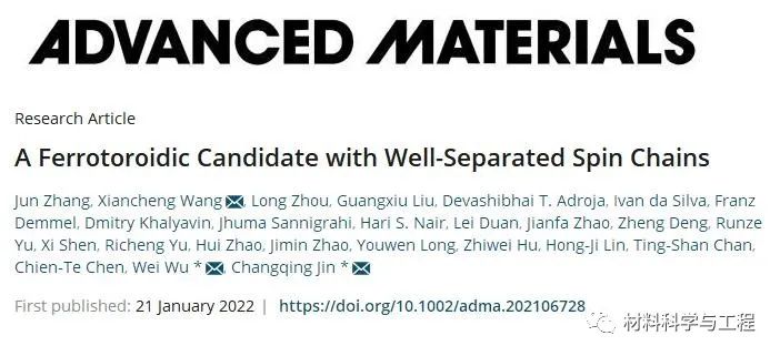 中国科学院物理研究所/北京凝聚态物理国家研究中心极端条件物理重点实验室靳常青、望贤成团队专注于高压合成新技术的研发和应用,运用先进的高压极端条件制备技术,近几年设计、研制、发现了多个系列具有准一维自旋链及导电链结构的新材料和新物性。最近该团队在准一维材料研制方面取得重要进展,运用高压制备技术,望贤成副研究员带领张俊博士发现了结构二聚化的准一维自旋链新材料Ba6Cr2S10。相关研究工作近期发表在Advanced Materials上。