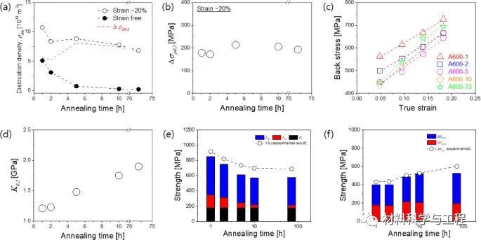 图7 对所有退火材料进行位错强化和背应力强化分析。