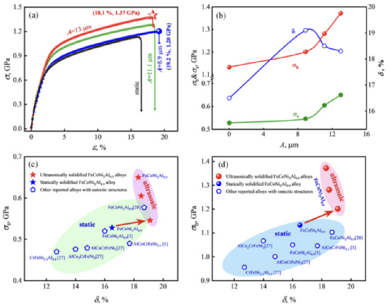 材料顶刊《Scripta Materialia》:通过超声细化共晶结构增强高熵铁合金的强度和延展性