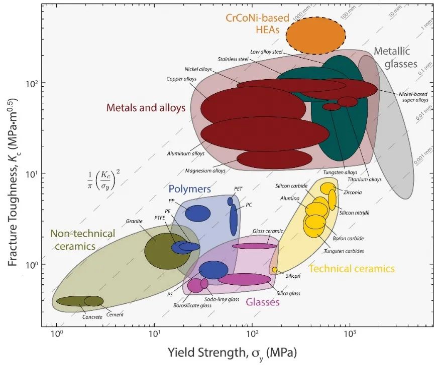Exceptional fracture toughness of CrCoNi-based medium- and high-entropy alloys at 20 kelvinDong Liu, Qin Yu, Saurabh Kabra, Ming Jiang, Paul Forna-Kreutzer, Ruopeng Zhang, Madelyn Payne, Flynn Walsh, Bernd Gludovatz, Mark Asta, Andrew M. Minor, Easo P. George, Robert O. RitchieScience, 2022, 378, 978-983. DOI: 10.1126/science.abp8070[1] Robert O. Ritchie, The conflicts between strength and toughness. Nat. Mater. 2011, 10, 817-822. DOI: 10.1038/nmat3115[2] B. Gludovatz, et al. A fracture-resistant high-entropy alloy for cryogenic applications. Science, 2014, 345, 1153-1158. DOI: 10.1126/science.1254581[3] E. P. George, et al., High-entropy alloys. Nat. Rev. Mater. 2019, 4, 515-534. DOI: 10.1038/s41578-019-0121-4[4] Say Hello to the Toughest Material on Earthhttps://newscenter.lbl.gov/2022/12/08/say-hello-to-the-toughest-material-on-earth/
