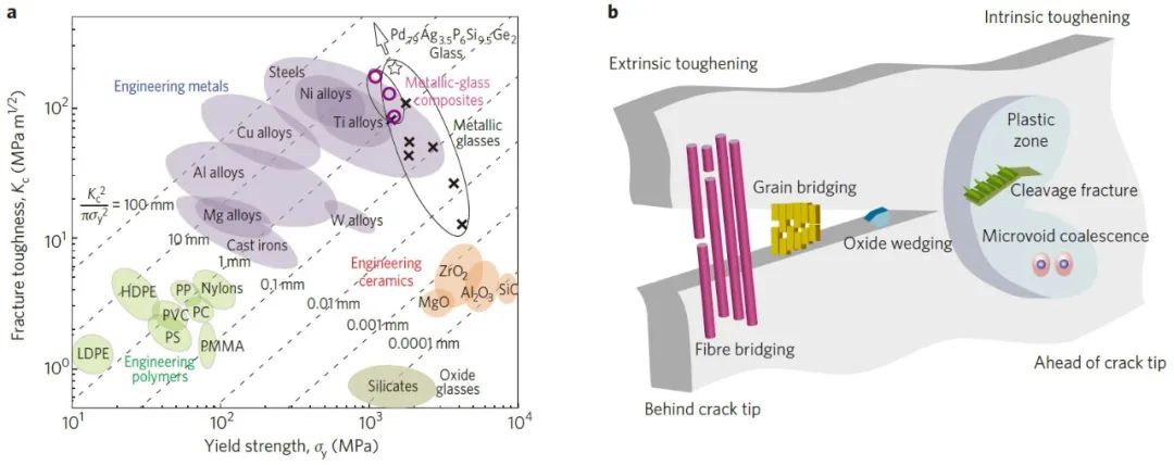 强度,代表材料对不可恢复变形的抵抗力,而韧性,是材料对断裂的抵抗能力。几乎所有工程材料的要求都是既强又韧,然而强度和韧性就像是一对欢喜冤家,总是此消彼长,难以兼容调和。