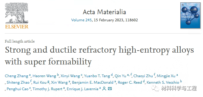 《Acta Materialia》:具有超强成形性的强韧性难熔高熵合金!