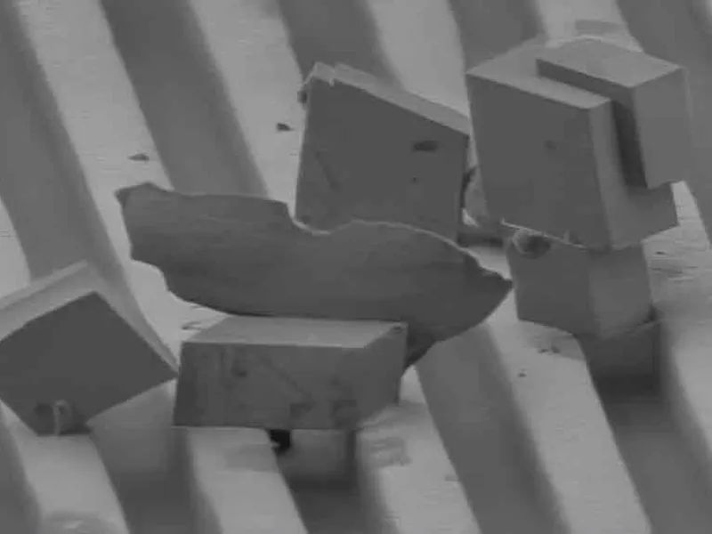 电镜下凹槽表面仅有几微米大小的石灰晶体。(照片:朱利安·施密德/苏黎世联邦理工学院)