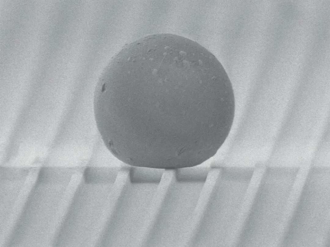 测试对象聚苯乙烯珠在凹槽表面上。(摄影:朱利安·施密德 / 苏黎世联邦理工学院)