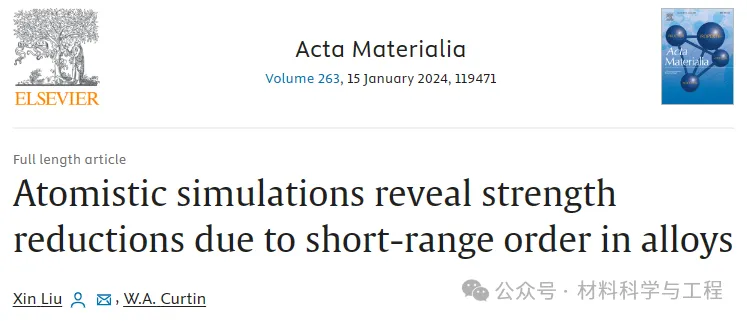 来自瑞士洛桑联邦理工学院的学者在二元铌钨合金模型中进行了精心设计的原子模拟,以证明由于溶质-位错相互作用而产生的合金强度可以增加或减少,这取决于 SRO,并与理论预测一致。具体来说,在具有极小真实溶质-溶质相互作用的合金体系中,使用虚构的溶质-溶质相互作用引入 SRO,然后使用裸弹带(NEB)方法计算各种 SRO 水平下边缘位错运动的能量势垒。当 Warren-Cowley SRO 参数为负值(不同溶质的吸引力)时,能垒和合金强度都会降低。同一体系的理论预测与模拟结果在数量上保持了合理的一致。这些研究结果表明,SRO 有可能会降低强度,这一点出乎意料,同时也进一步验证了分析理论作为合金设计指导工具的有效性。相关工作以题为“Atomistic simulations reveal strength reductions due to short-range order in alloys”的研究性文章发表在Acta Materialia 。
