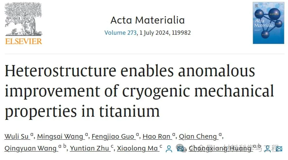 《Acta Materialia》:屈服1.2GPa,延伸率27%!异构显著提升纯钛低温力学性能