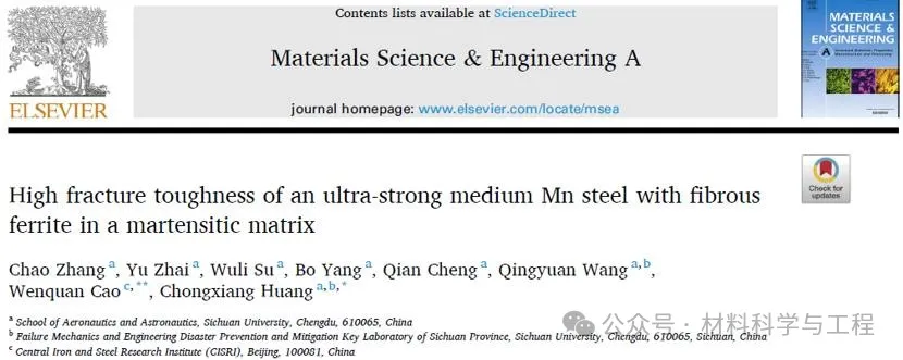 《MSEA》:纤维异构显著提升2.1GPa超高强度中锰钢的断裂韧性!