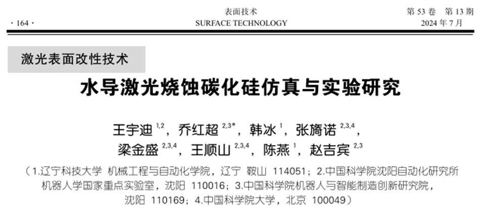 王宇迪, 乔红超, 韩冰, 等. 水导激光烧蚀碳化硅仿真与实验研究[J]. 表面技术, 2024, 53(13): 164-174.
