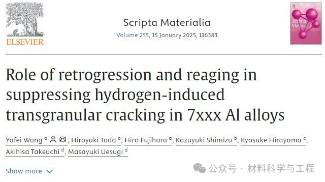 [1] Y. Wang, H. Toda, H. Fujihara, K. Shimizu, K. Hirayama, A. Takeuchi, M. Uesugi, Role of retrogression and reaging in suppressing hydrogen-induced transgranular cracking in 7xxx Al alloys, Scripta Mater.(2024).