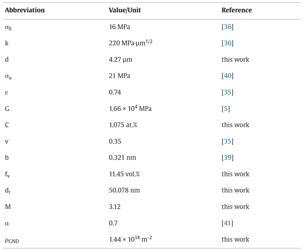 表6 本研究中使用的关键参数用于计算SLM WE43合金的强化机理。